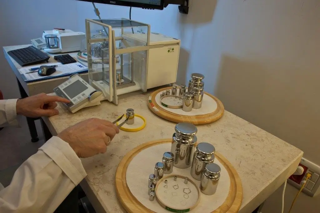 משקולות אלה מכוילות במעבדת מסה באמצעות סטנדרטים מכוילים (משקולות וקומפרטורים).